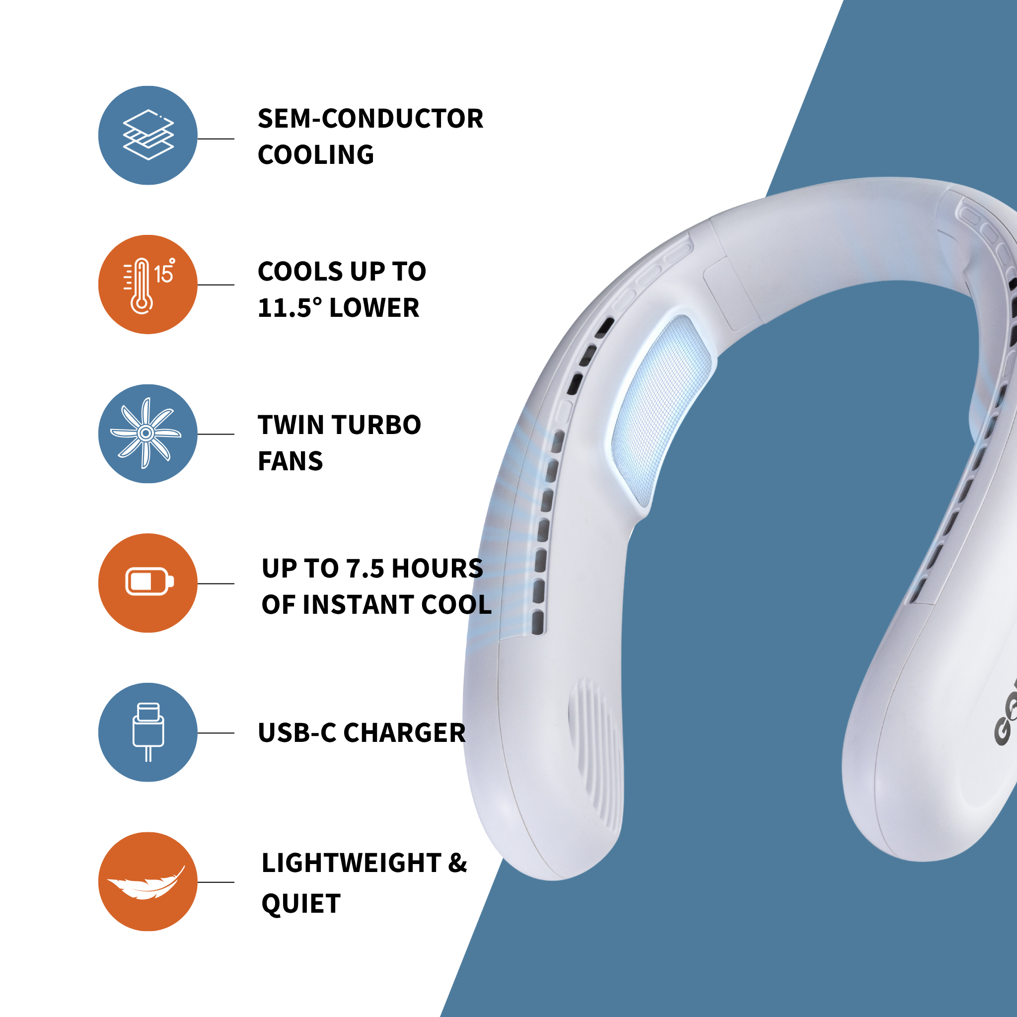 Peltier-powered cooling meets high-speed airflow. The Halo-iC uses advanced Peltier plates combined with dual fans to deliver instant, wearable cooling relief. It’s more than just a fan—this is next-gen temperature control for your neck.