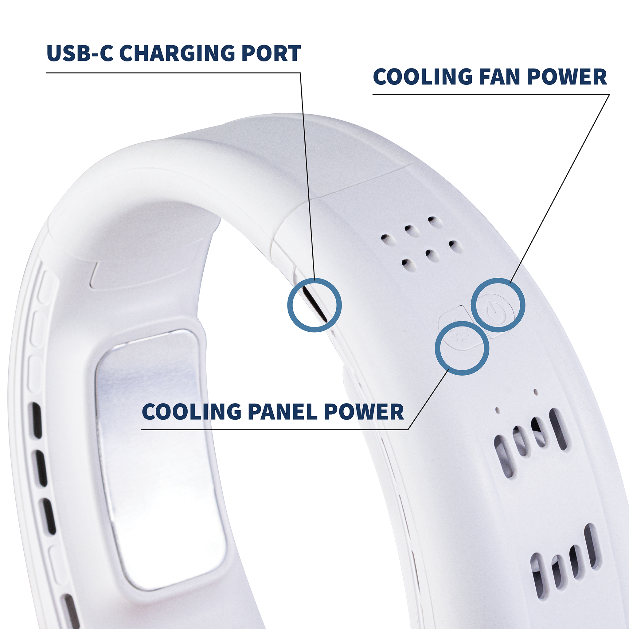 Peltier cooling technology uses thermoelectric modules to create a rapid temperature drop when powered. The Halo-iC’s Peltier plates can reach 11.5°C (52.7°F) for a refreshing, chill-on-contact feel that standard fans can’t match.