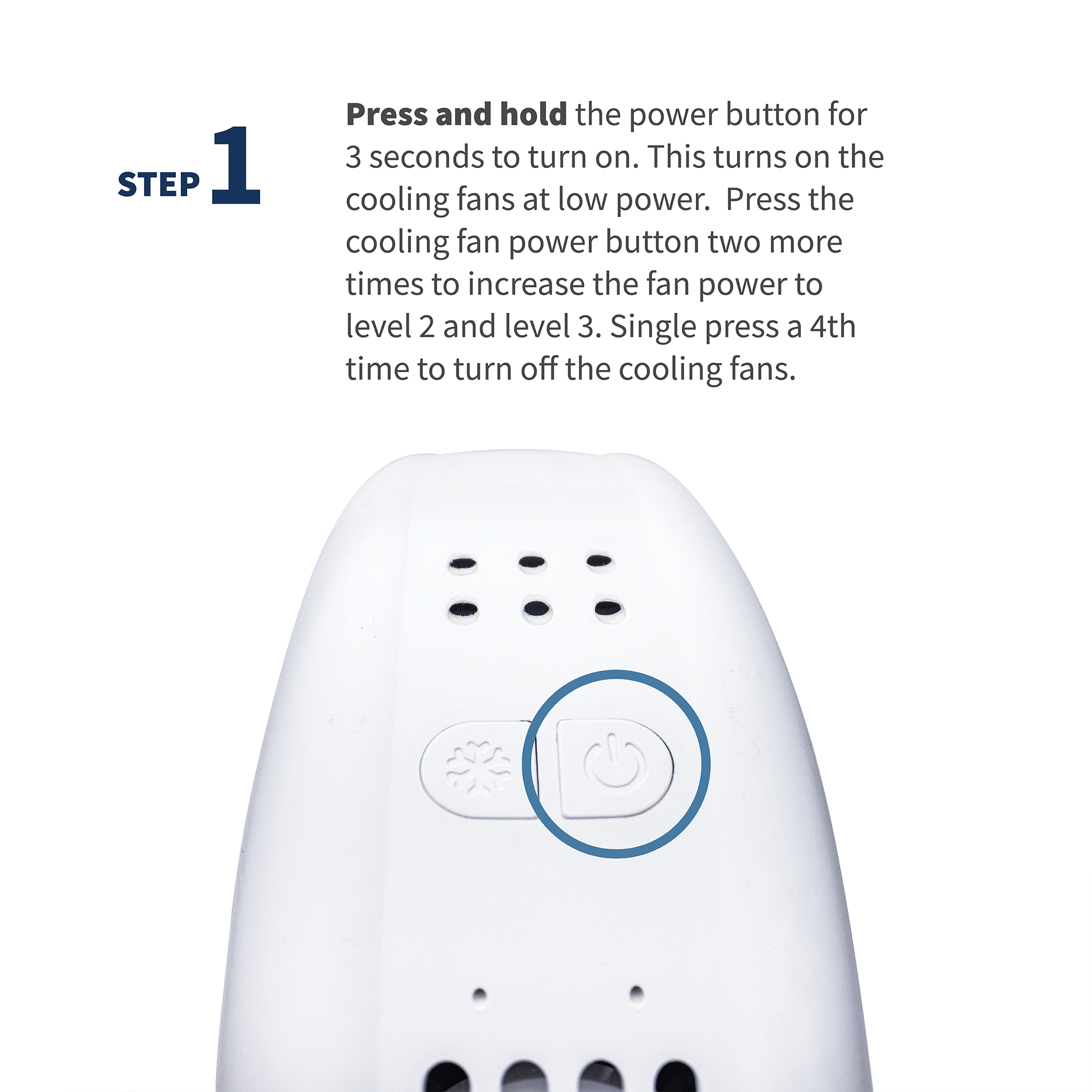 Short press the power button to choose your fan speed. Long press for 3 seconds to activate cooling mode.
