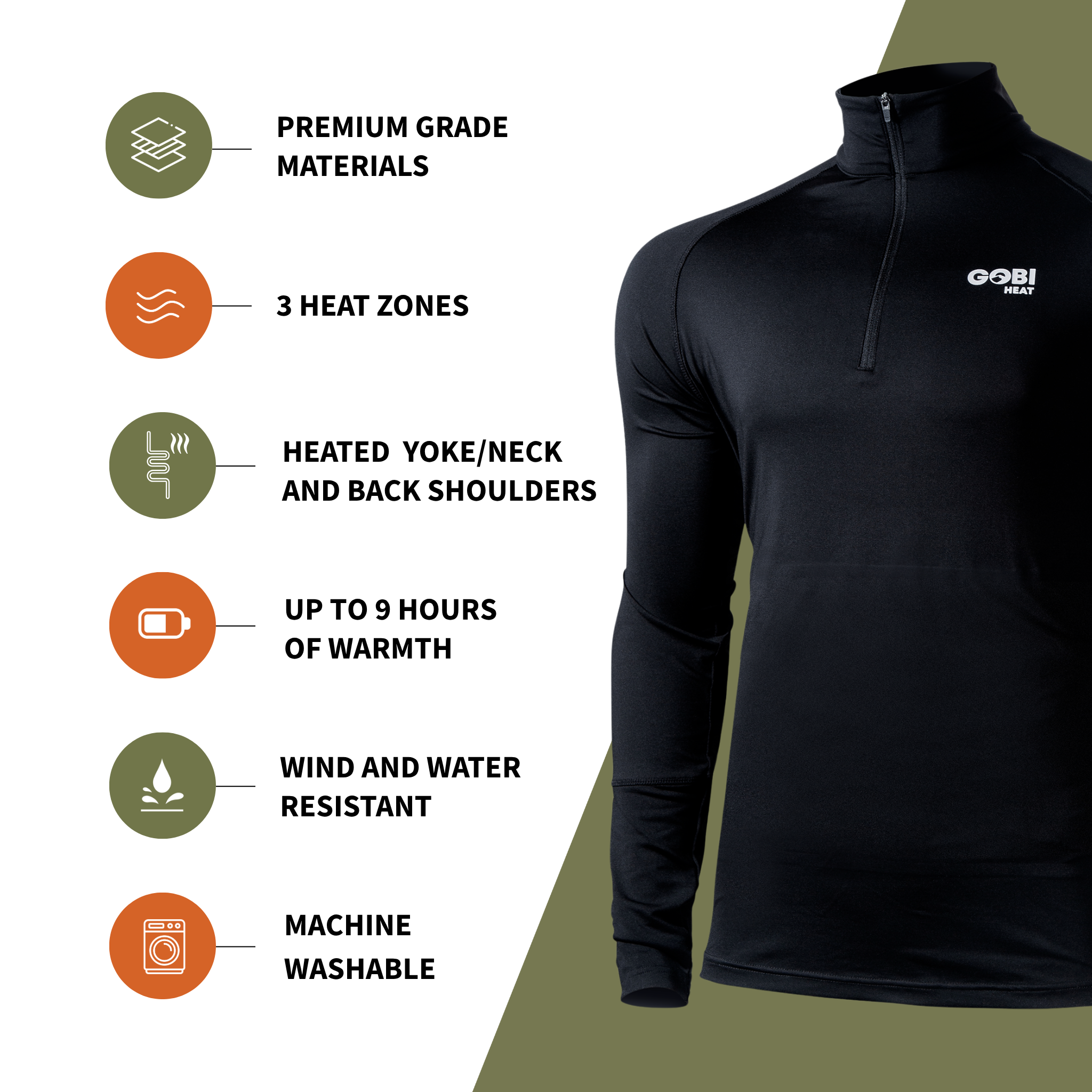With heat zones in the abdomen, back and neck, you are heating up your core muscles increasing circulation, keeping yourself warm even in the harshest conditions.