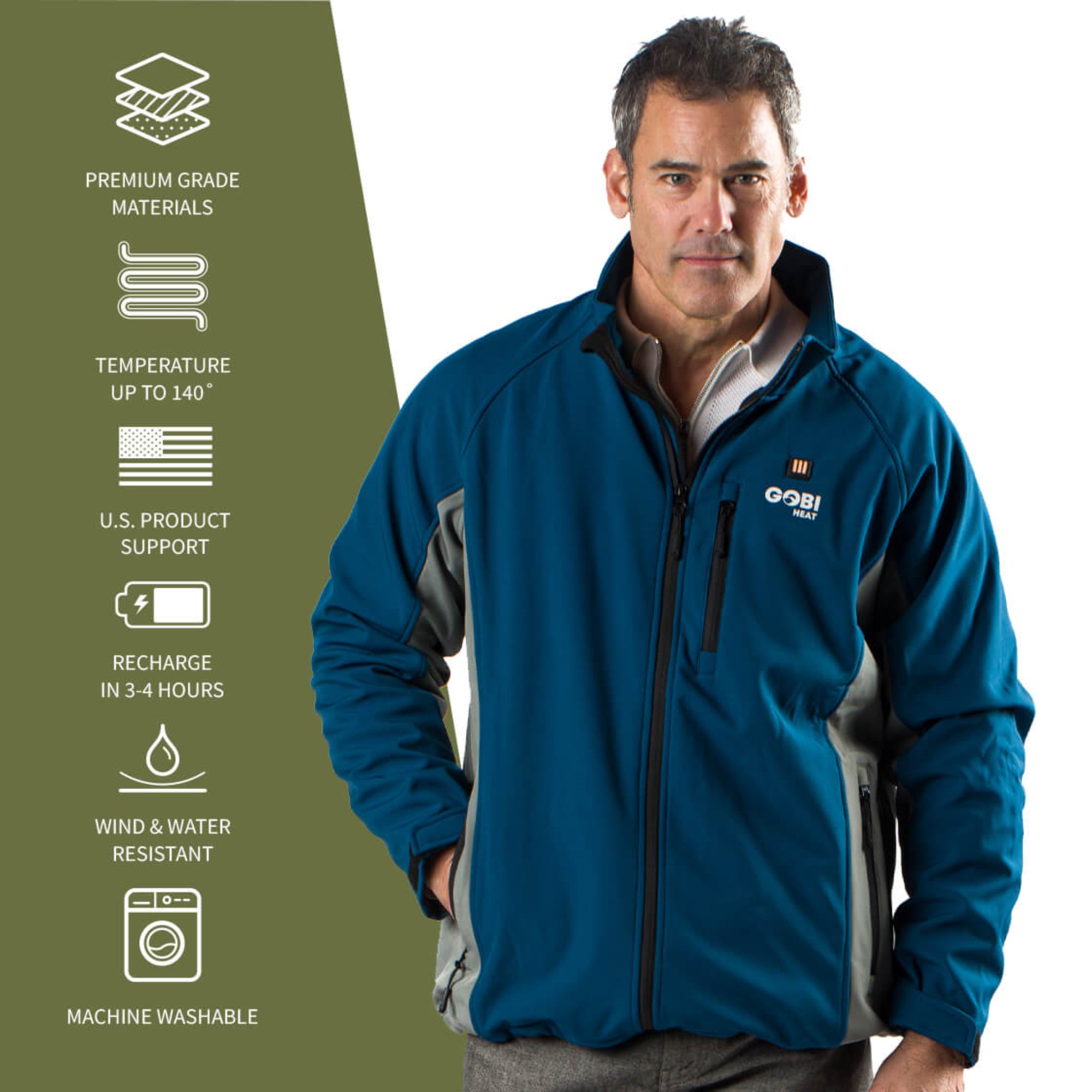 The most versatile mens heated jacket in the heated clothing industry, the Sahara soft-shell heated jacket is wind, water, and abrasion resistant and allows you to control your body temperature with three heat settings: Low, Medium, and High. Also, this heated jacket has three heat zones in the most effective locations, two heat zones in the chest and a large zone in the back.