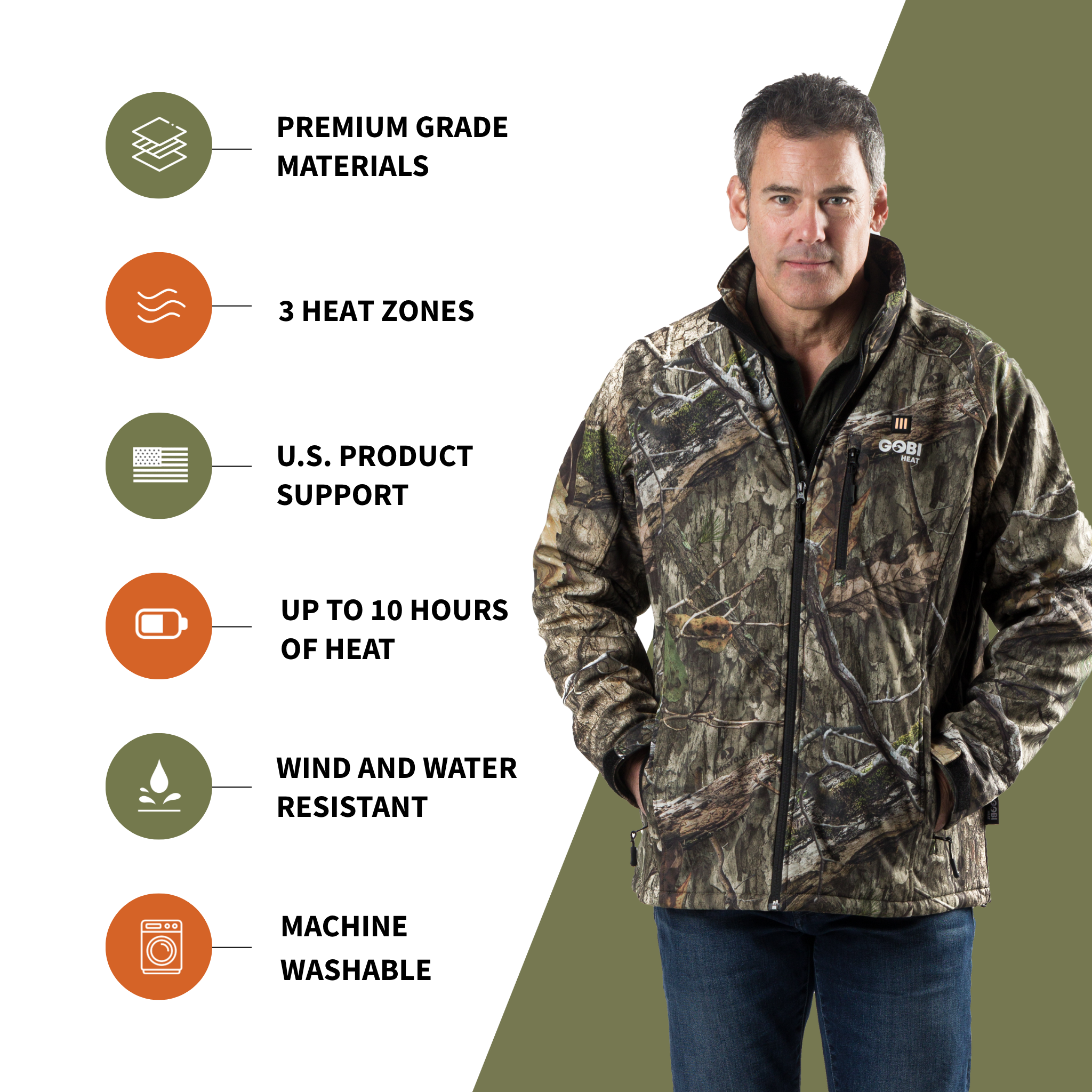 Sahara Men's Heated Hunting Jacket - Mossy Oak Camo — 3 Bar Button Low/Med/High