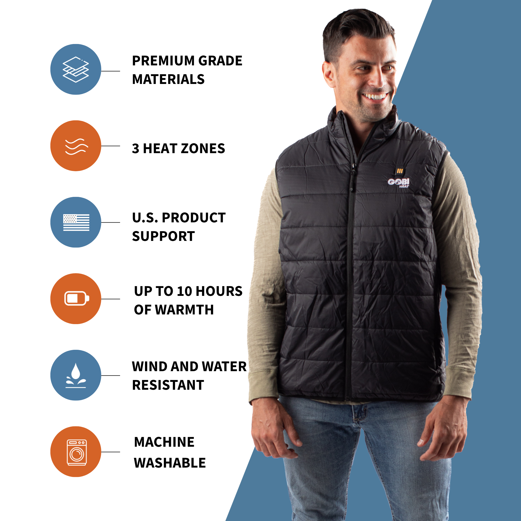 Element Men's Heated Vest — 3 Bar Button Low/Med/High