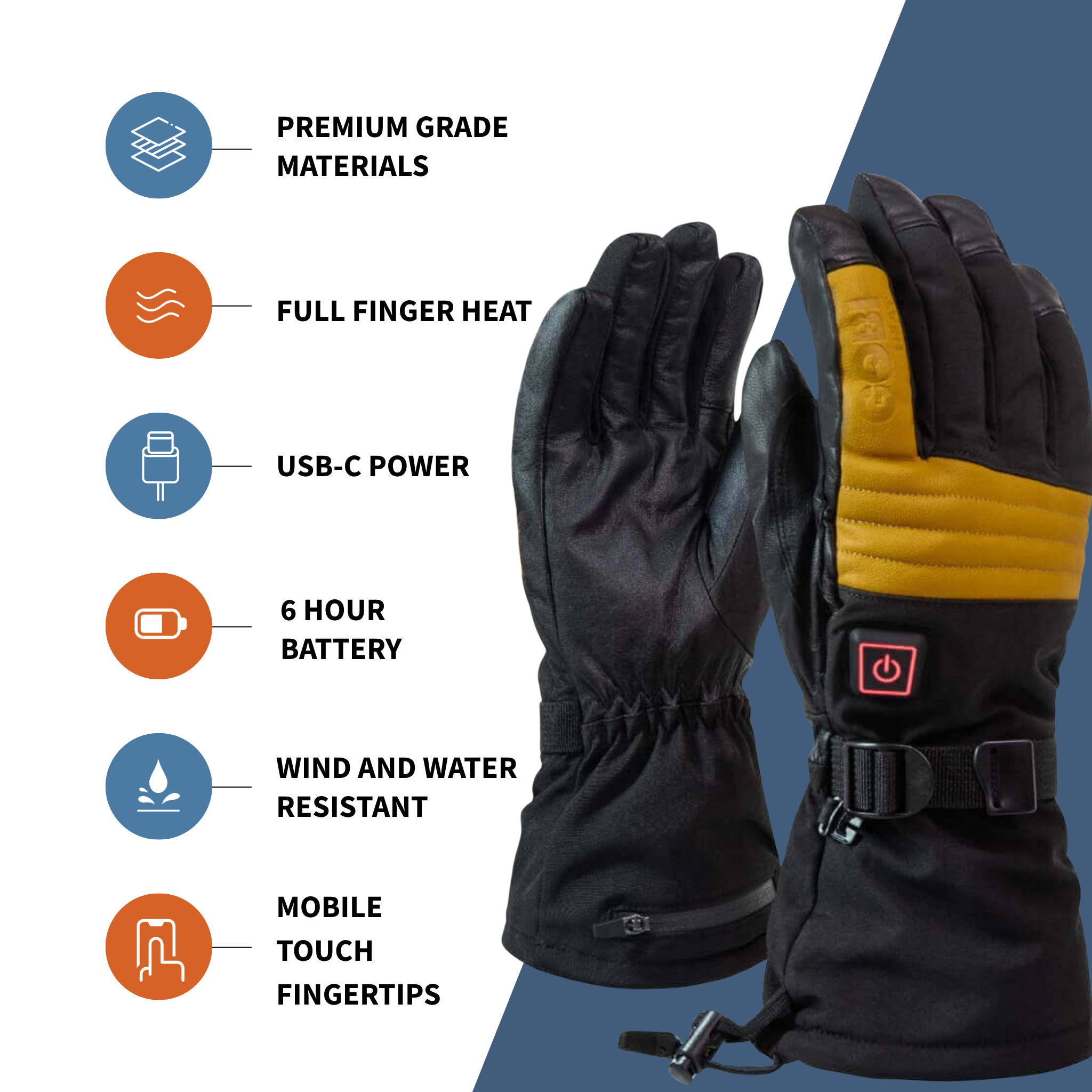 Vertex II Heated Ski Gloves (3500mAh USB-C batt) - Gobi Heat