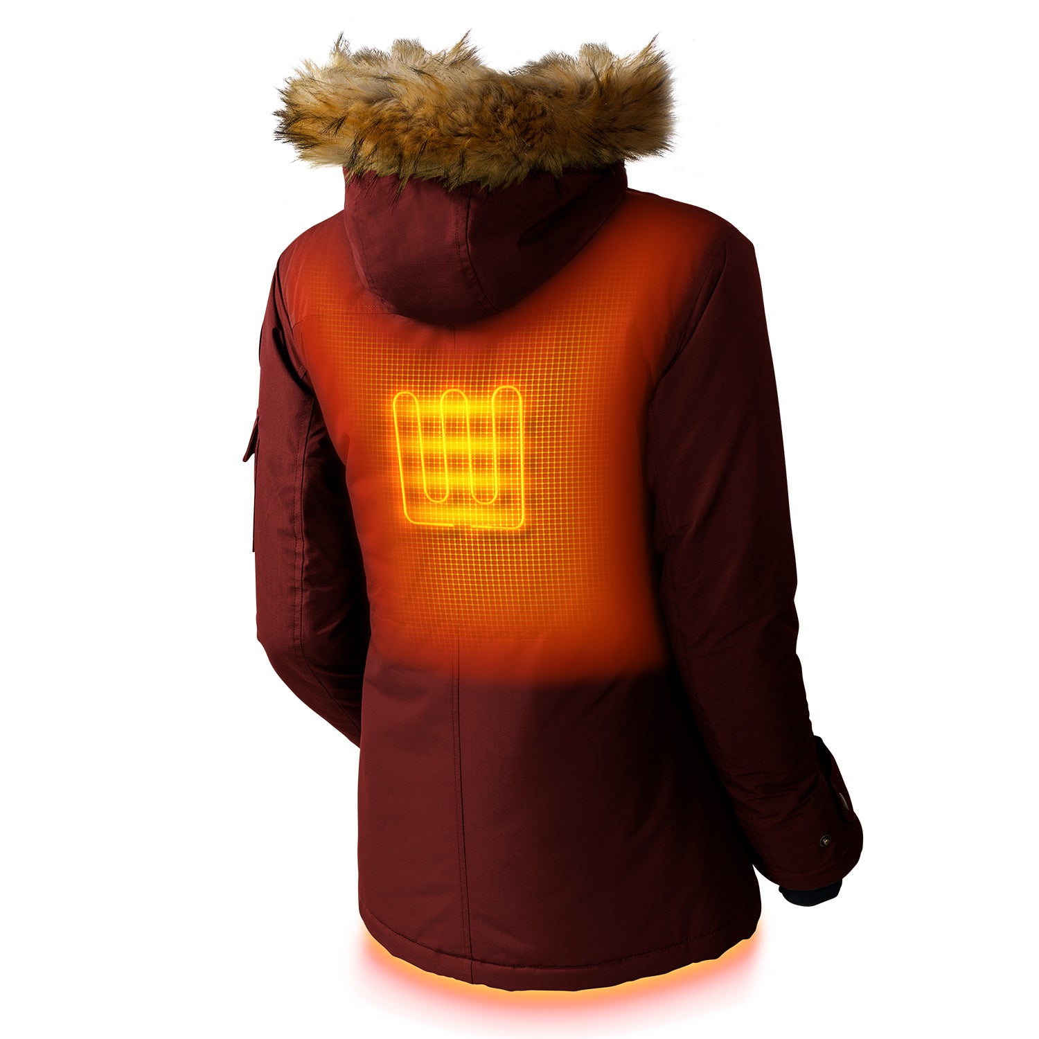 Arcadia Womens Heated Parka — 3 Bar Button Low/Med/High