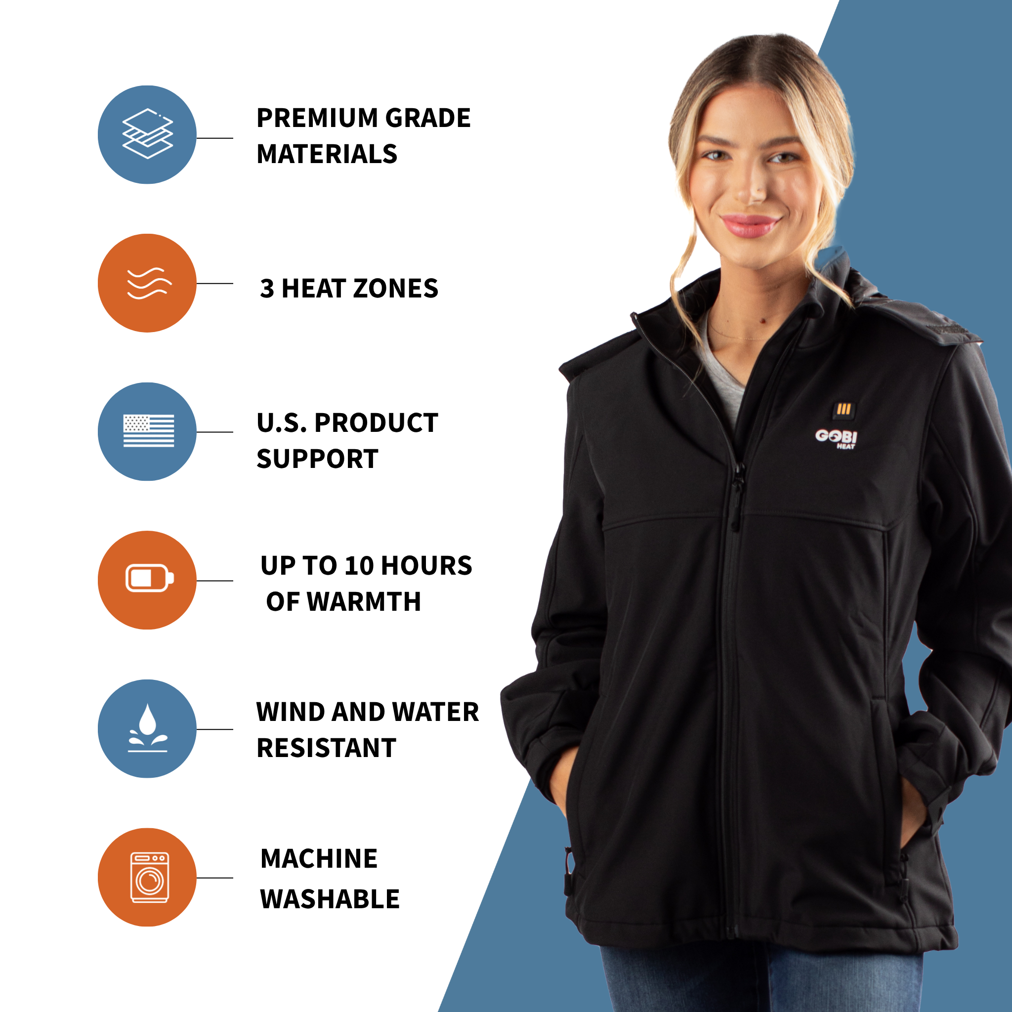 Sahara II Women's Heated Jacket — 3 Bar Button Low/Med/High